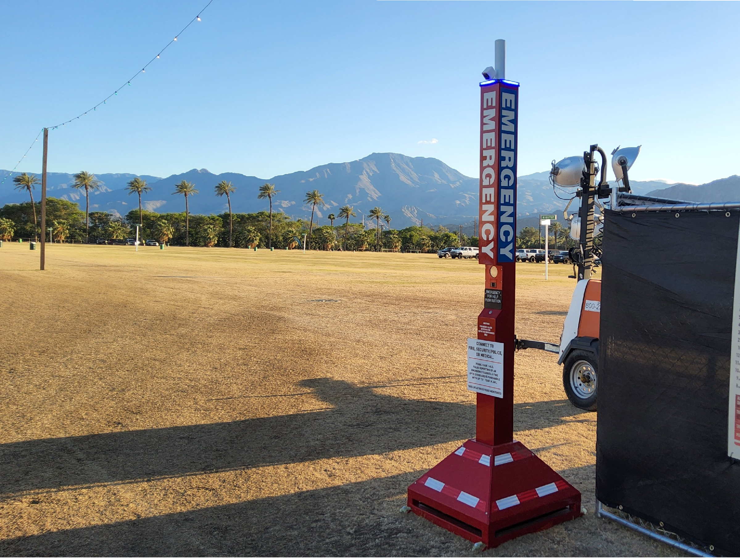 Eight foot tall with a top mounted blue light and reflective text for ease of recognition. Illuminated Button and information panel.